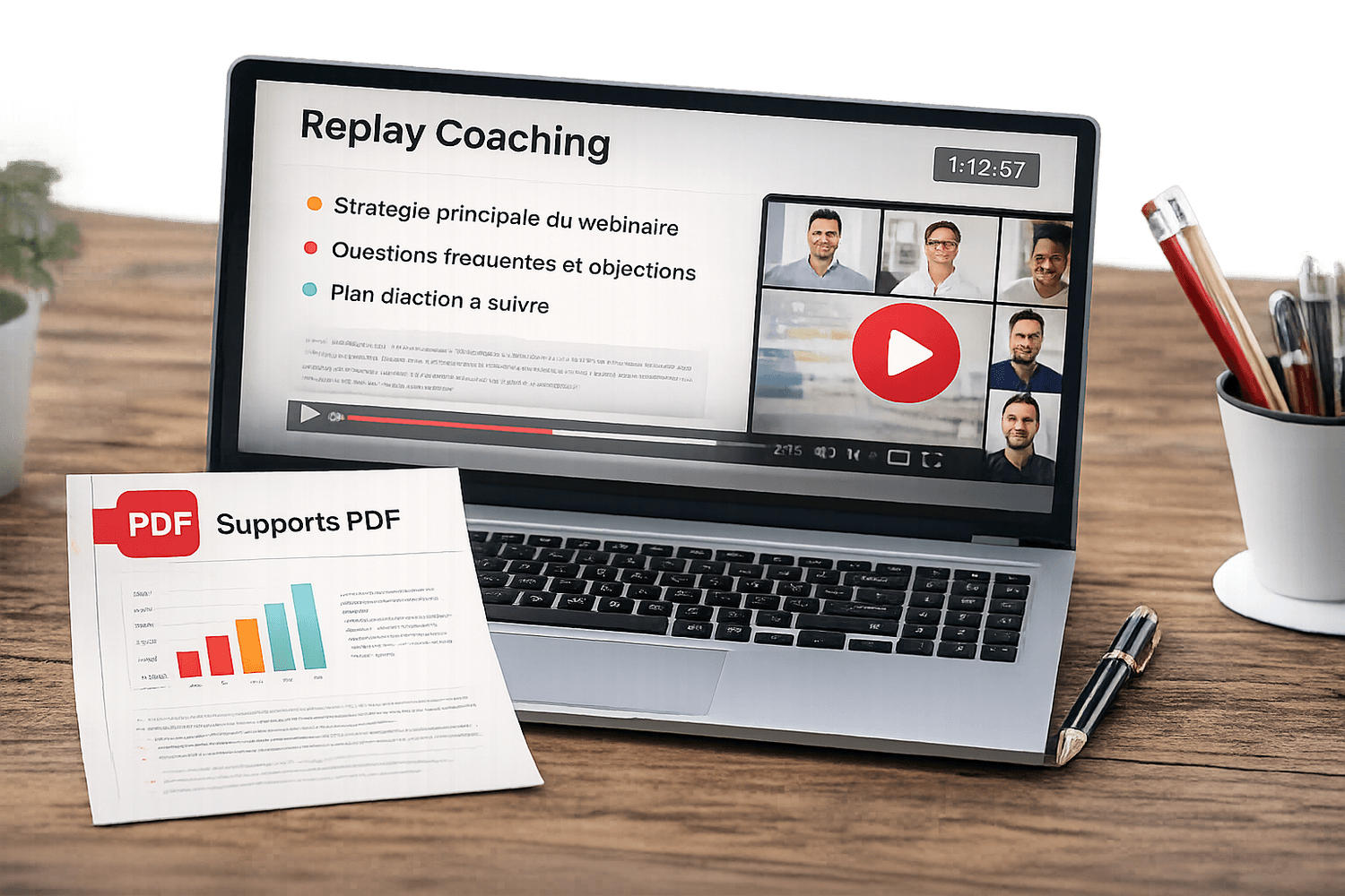 pour revoir les points essentiels et continuer à progresser même si vous manquez un direct.